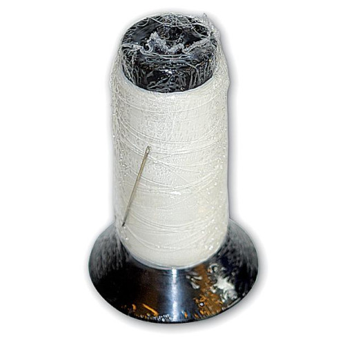 Klosje zeilreparatiegaren met naald. Zowel geschikt om met de hand als met de naaimachine te naaien. Kleur wit.
