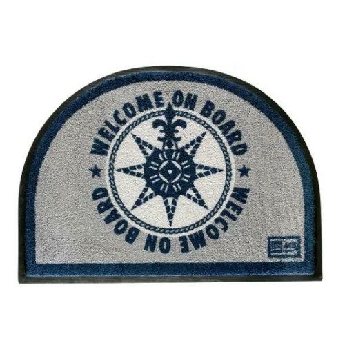Halfronde mat voor de boot of camper met de tekst "Welcome on Board".