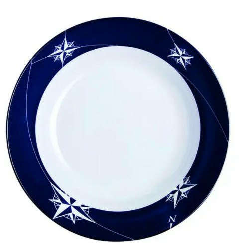 Northwind kom van Marine Business. Met navykleurige rand en witte kompasrozen. Gebruik deze onbreekbare kom voor het serveren van soep, salade, pasta, yoghurt of snacks. Mooi in combinatie met het Northwind ontbijt- en dinerbord. Bekijk ook de bijpassende onbreekbare glazen van Northwind.